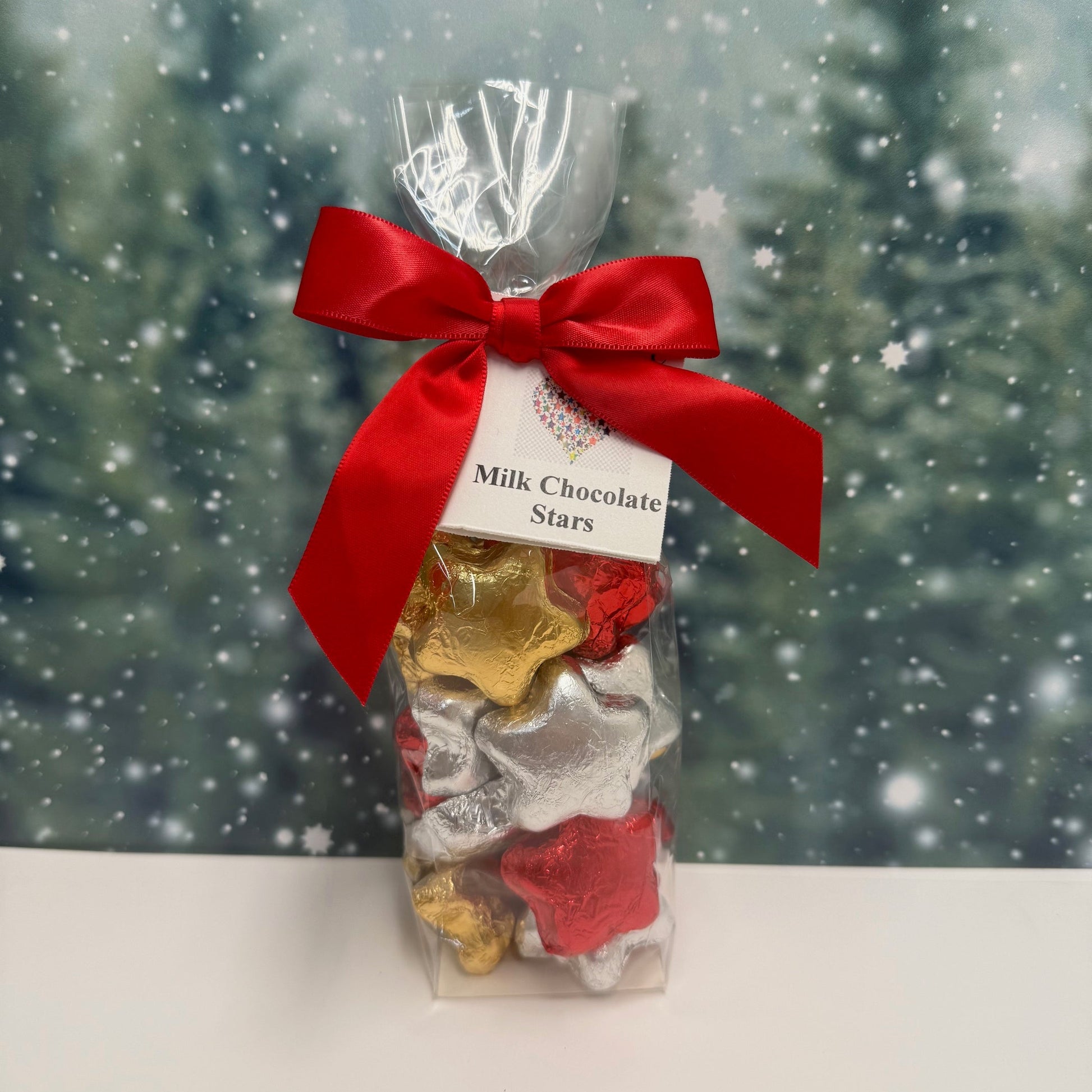 An 8 oz. Bag of our Milk or Dark Chocolate Foiled Stars